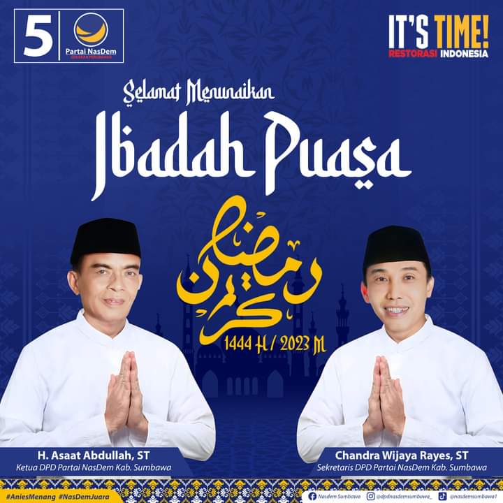 Keluarga Besar DPD Nasdem Kabupaten Sumbawa Mengucapkan Selamat Menunaikan Ibadah Puasa 1444 H