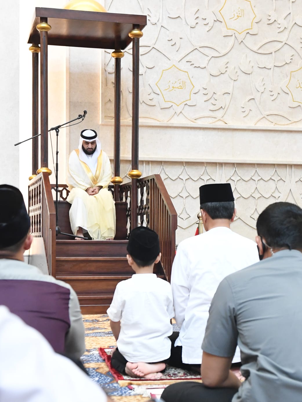 Pada kesempatan tersebut, Sheikh Sultan Al-Marzooqi yang bertindak sebagai imam sekaligus khatib menyampaikan khotbah yang bertema “Al-Quran dan Puasa”. Usai salat Jumat berjemaah, Presiden Jokowi beserta cucu keluar dari masjid dan kembali menuju ke kediaman.