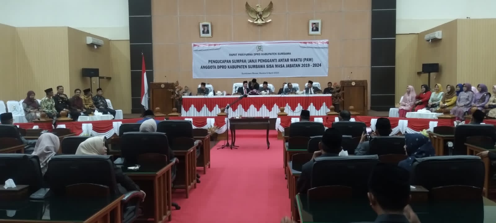 SUMBAWA- Satu anggota Pengganti Antar Waktu (PAW) untuk sisa masa jabatan 2019-2024 dilantik pada paripurna DPRD Sumbawa, Kamis (6/4/23).