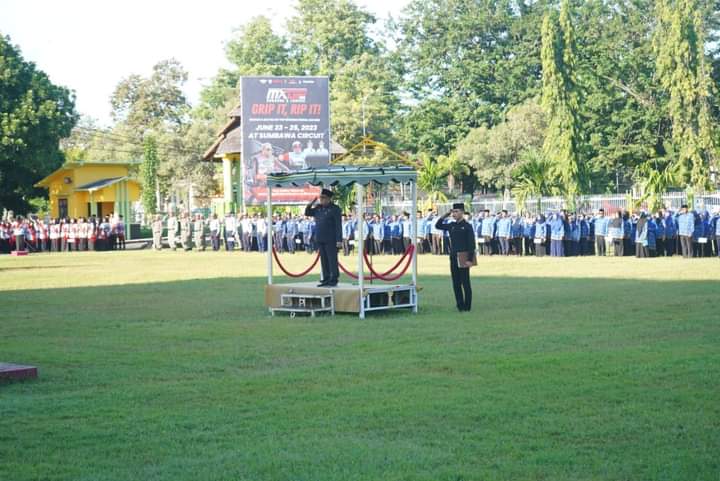 SUMBAWA- Upacara peringatan Hari Otonomi Daerah ke-27 digelar di Halaman Kantor Bupati Sumbawa, Selasa (2/5/23).
