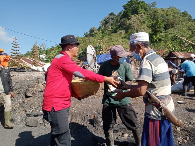 SUMBAWA- Dinas Sosial Kabupaten Sumbawa terus memastikan pemenuhan kebutuhan makan dan minum korban kebakaran Musuk.