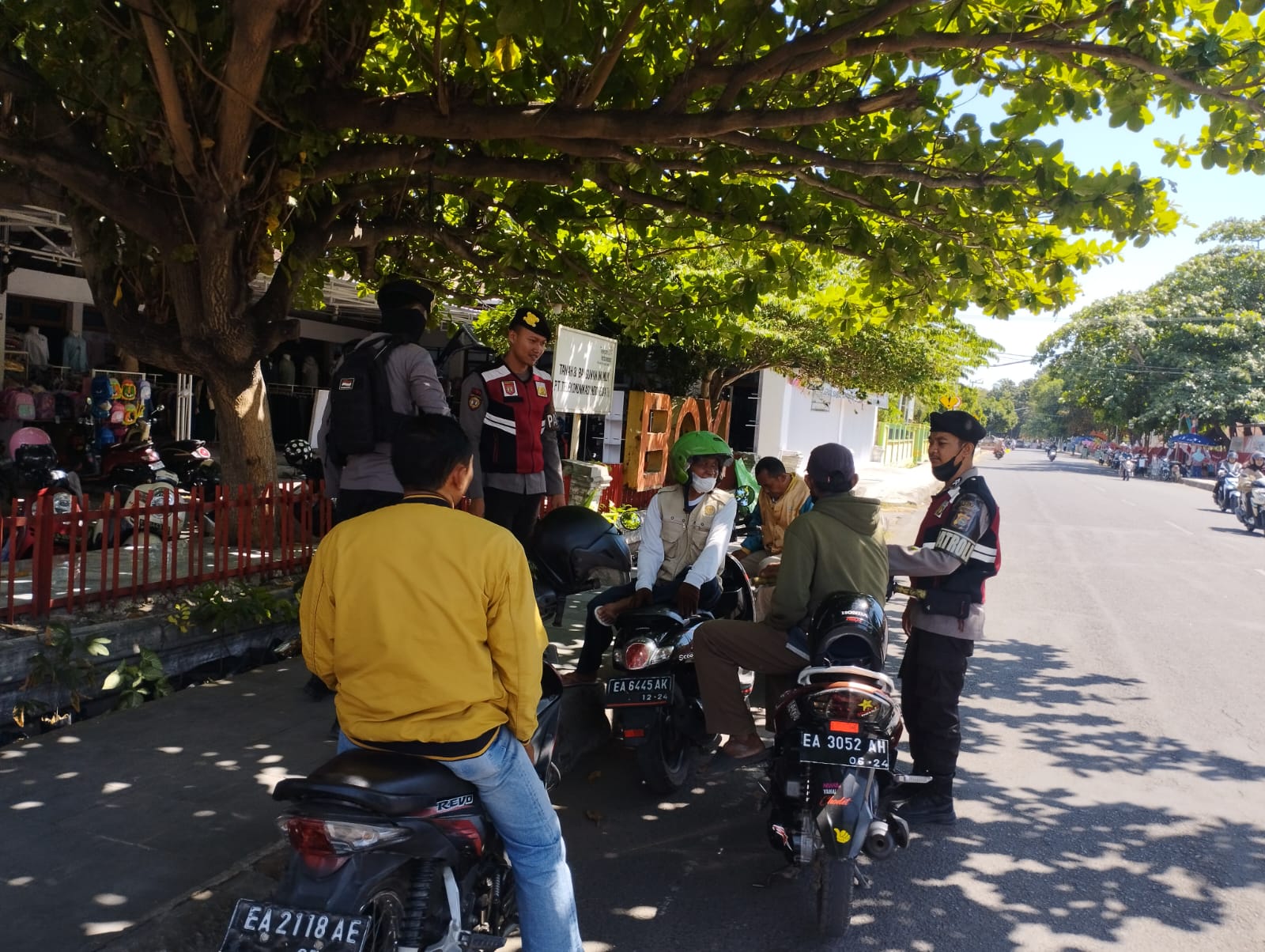SUMBAWA- Personel Unit Patroli Samapta Polres Sumbawa melakukan patroli dialogis ke pangkalan ojek yang berada di Wilayah Hukum Polres Sumbawa serta memberikan himbauan kamtibmas kepada para pengemudi ojek, Sabtu (29/07/23).