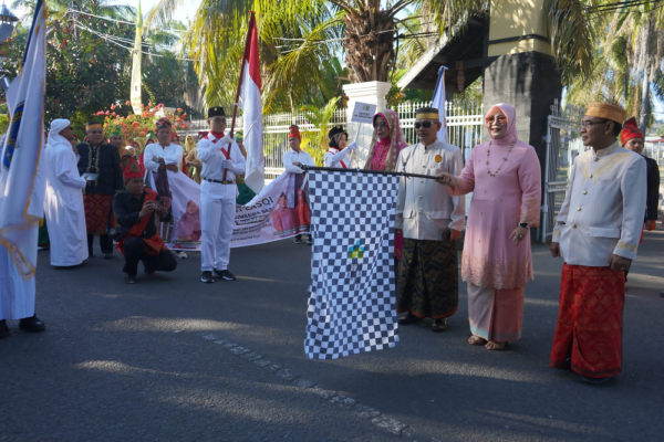 SUMBAWA- Wakil Bupati Sumbawa Hj. Dewi Noviany,S.Pd.,M.Pd. melepas Parade defile kafilah Lasqi tingkat Provinsi Nusa Tenggara Barat, bertempat di Lapangan Pahlawan, Rabu (2/8/23).