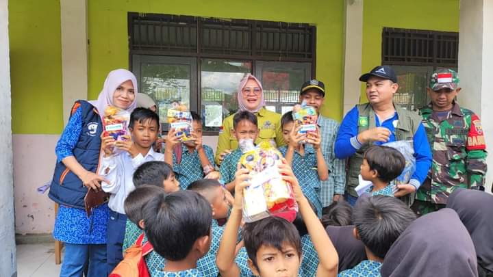“Kami berikan bantuan sasaran ibu hamil sama anak yang kena stunting bantuan telur, susu, biskuit, beras, minyak goreng, gula dan barang sembako,” kata wabup lagi.