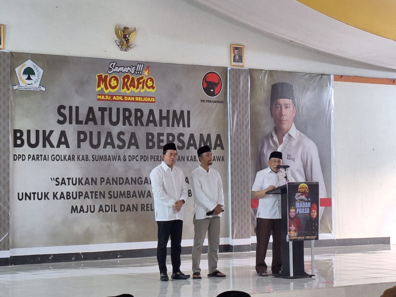 LSUMBAWA- Acara silaturahmi dan buka puasa bersama sekaligus temu kader Golkar dan PDIP beserta simpatisan, Minggu (24/3/24) di Hotel Sernu raya mengindikasikan Solidnya paket Mofiq (Mahmud Abdullah-Abdul Rafiq) untuk maju di Pilkada Sumbawa.