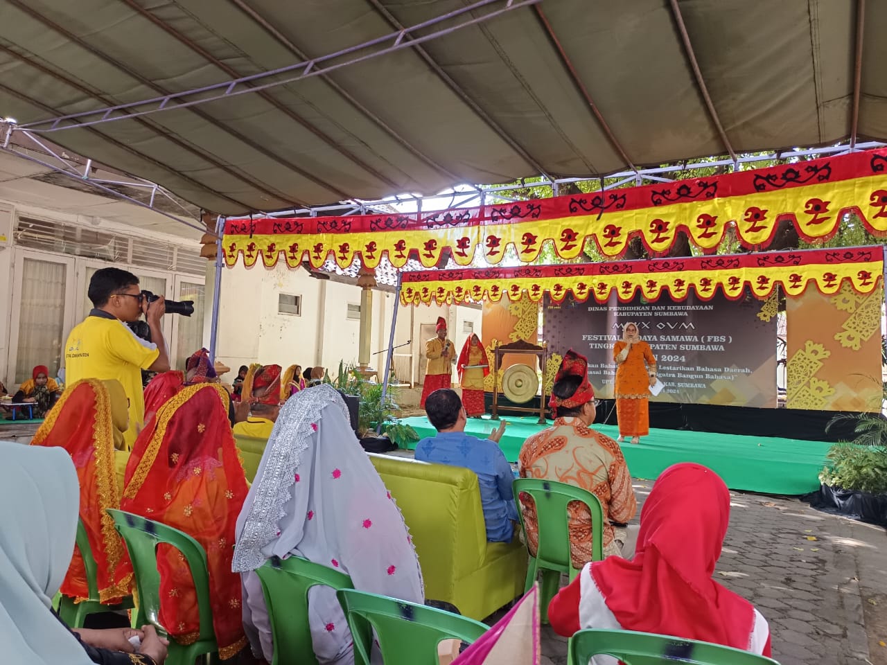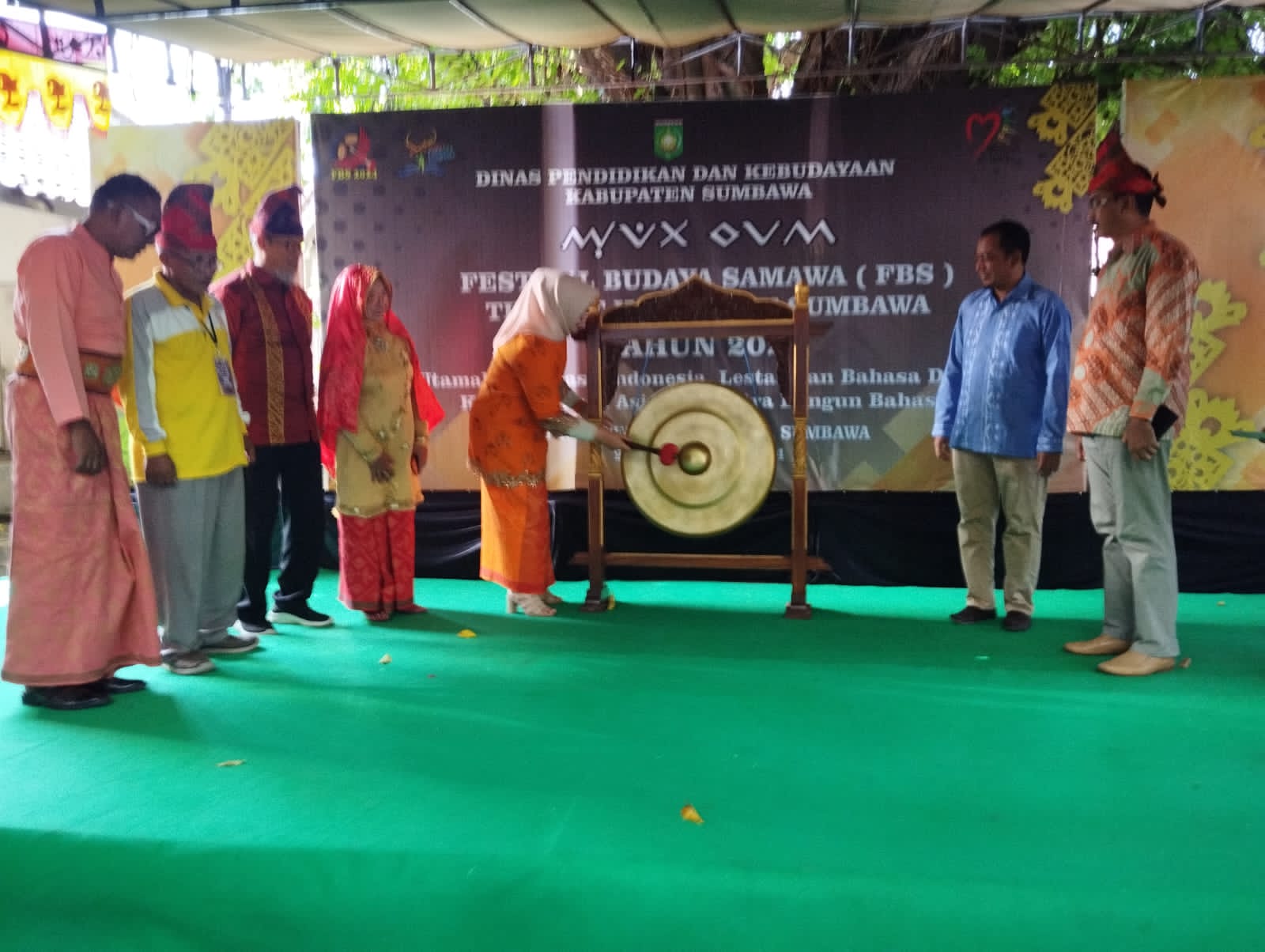Pembukaan Festival yang dipusatkan di Museum Daerah, Sabtu (27/4). Ditandai dengan pemukulan gong oleh Wakil Bupati Sumbawa Hj. Dewi Noviany S.Pd., M.Pd yang didampingi Kadis Dikbud, Dr. Muhammad Ikhsan Safitri M.Sc, Ketua Dewan Kesenian Sumbawa, H. Iskandar D, Mc.Dev, Sekdis Sudarli S.Pt, M.Si, Kabid SMP Abdul Azis S.Pd dan Kabid Kebudayaan, Fitriati SP., MP.