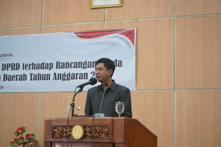 SUMBAWA- Juru Bicara Fraksi Golkar DPRD Sumbawa, Gahtan Hanu Cakita, dalam rapat paripurna DPRD Sumbawa, Kamis (8/8/24) menyampaikan apresiasi tinggi terhadap pemerintah daerah Kabupaten Sumbawa atas capaian kinerja selama tahun 2024.