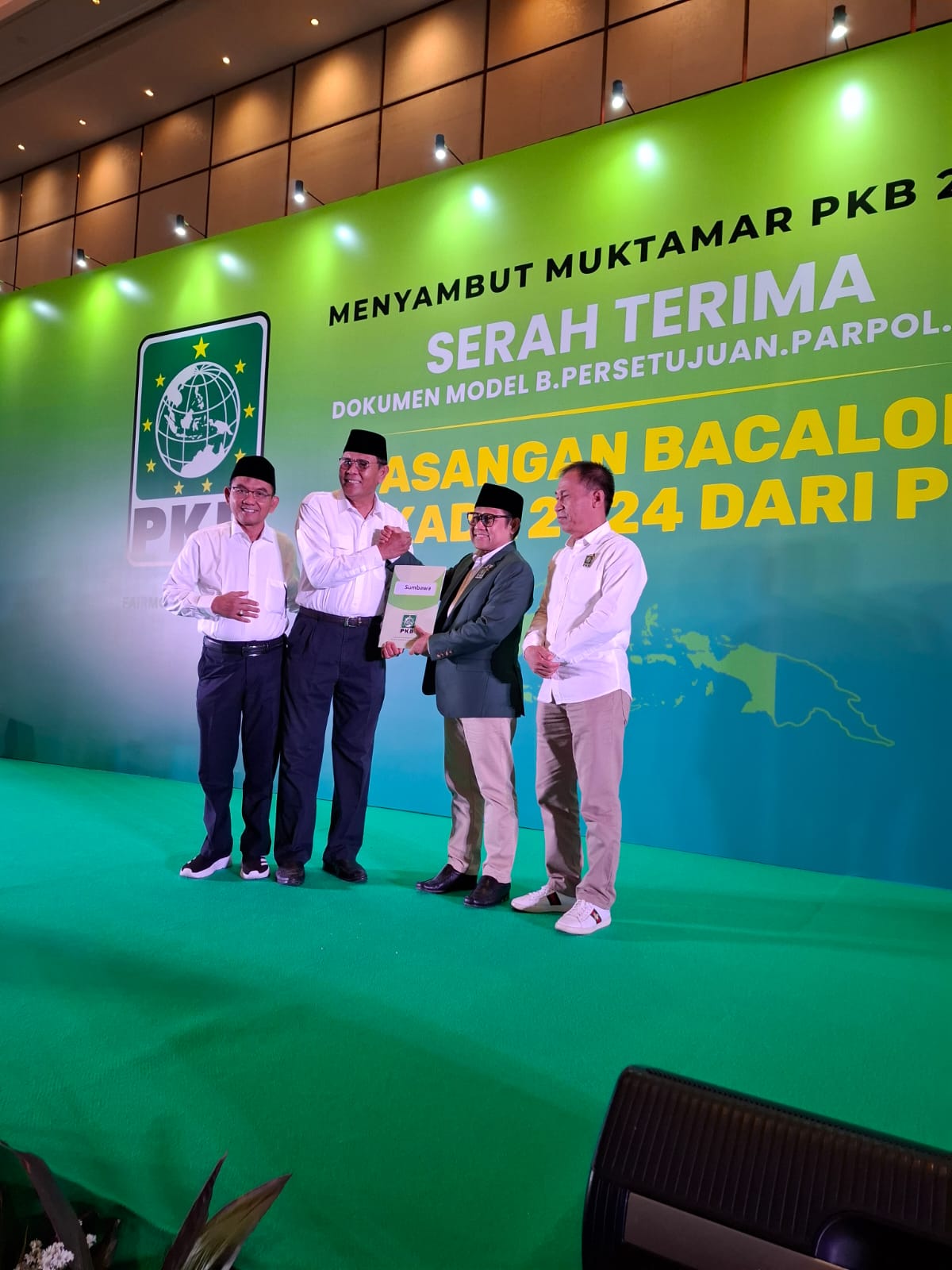 Jakarta, 18 Agustus 2024 – Pasangan calon Bupati dan Wakil Bupati Sumbawa, Ir. H. Syarafuddin Jarot, MP, dan Drs. H. Muhamad Ansori, resmi mendapatkan dukungan dari Partai Kebangkitan Bangsa (PKB) untuk maju di Pilkada Sumbawa 2024. Dokumen Model B Persetujuan Parpol KWK PKB diserahkan langsung oleh Ketua Umum PKB, Muhaimin Iskandar, di Jakarta, Minggu (18/8/2024).