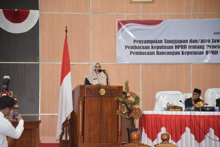 Demikian jawaban tertulis bupati Sumbawa atas pandangan Fraksi-fraksi DPRD Sumbawa yang dibacakan Wakil Bupati Sumbawa dalam paripurna, Senin (12/8/24).