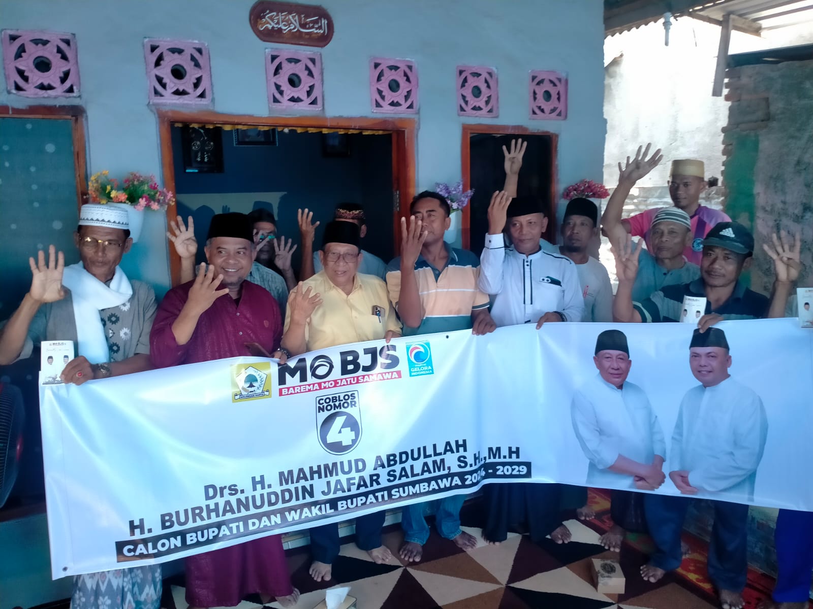 Diceritakan bahwa dirinya maju sebagai bupati dan wakil bupati Sumbawa bersama H. Burhanuddin Jafar Salam (BJS). Gandengannya adalah Partai Golkar dan Partai Gelora (Gelombang Rakyat). Yang kebetulan di Kabupaten Sumbawa diketuai oleh BJS sendiri. Di kepengurusan pusat ada H.Fahri Hamzah. “Mohon dukungan doa bersama agar pak Fahri masuk dalam jajaran pak Prabowo. Pak Fahri sudah berjanji ketika nanti pasangan Mo-BJS terpilih jadi bupati dan wakil bupati Sumbawa, 2024-2029, Program pembangunan Kabupaten Sumbawa akan di dukung penuh. Artinya kami komit untuk bersama-sama “Jatu” (urus) Samawa. Termasuk dengan bapak/ibu sekalian,”katanya.