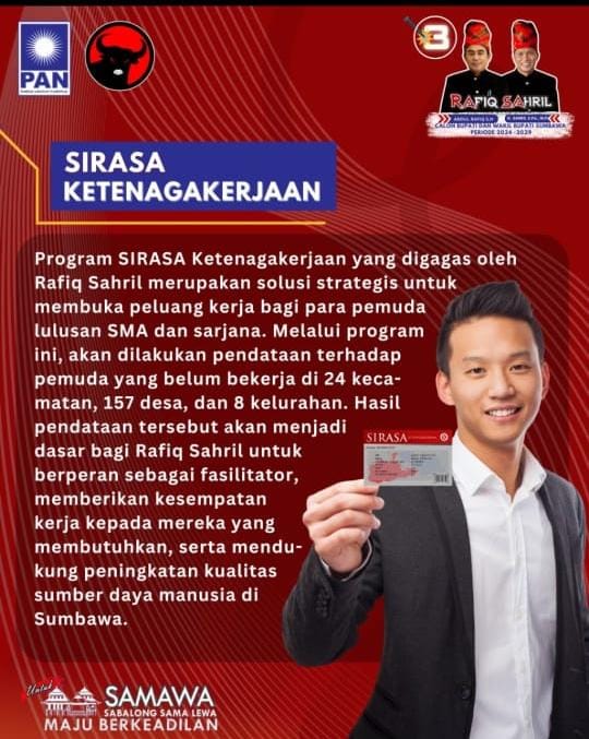 Selain membuka akses kerja, Rafiq dan Sahril juga berencana mengembangkan UMKM, industri kecil menengah, dan sektor pariwisata di Sumbawa untuk menciptakan lebih banyak lapangan kerja baru.