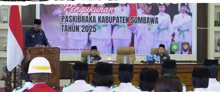 SUMBAWA (15 Agustus 2025) – Bupati Sumbawa, Ir. H. Syarafuddin Jarot, MP, secara resmi mengukuhkan 31 putra-putri terbaik daerah sebagai anggota Pasukan Pengibar Bendera Pusaka (Paskibraka) Kabupaten Sumbawa Tahun 2025 dalam sebuah upacara khidmat di Aula H. Madilaoe ADT, Kantor Bupati Sumbawa, Jumat sore.