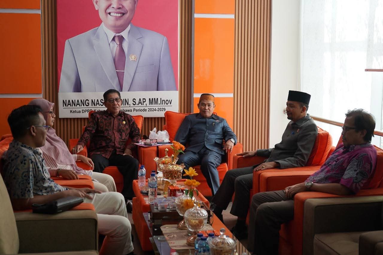 Rombongan DPRD KSB diterima langsung oleh Ketua DPRD Kabupaten Sumbawa, Nanang Nasiruddin, S.AP., M.M.Inov, didampingi Wakil Ketua I, H.M. Berlian Rayes, S.Ag., M.M.Inov, dan Wakil Ketua II, Gitta Liesbano, SH., M.Kn, di Ruang Ketua DPRD Kabupaten Sumbawa.