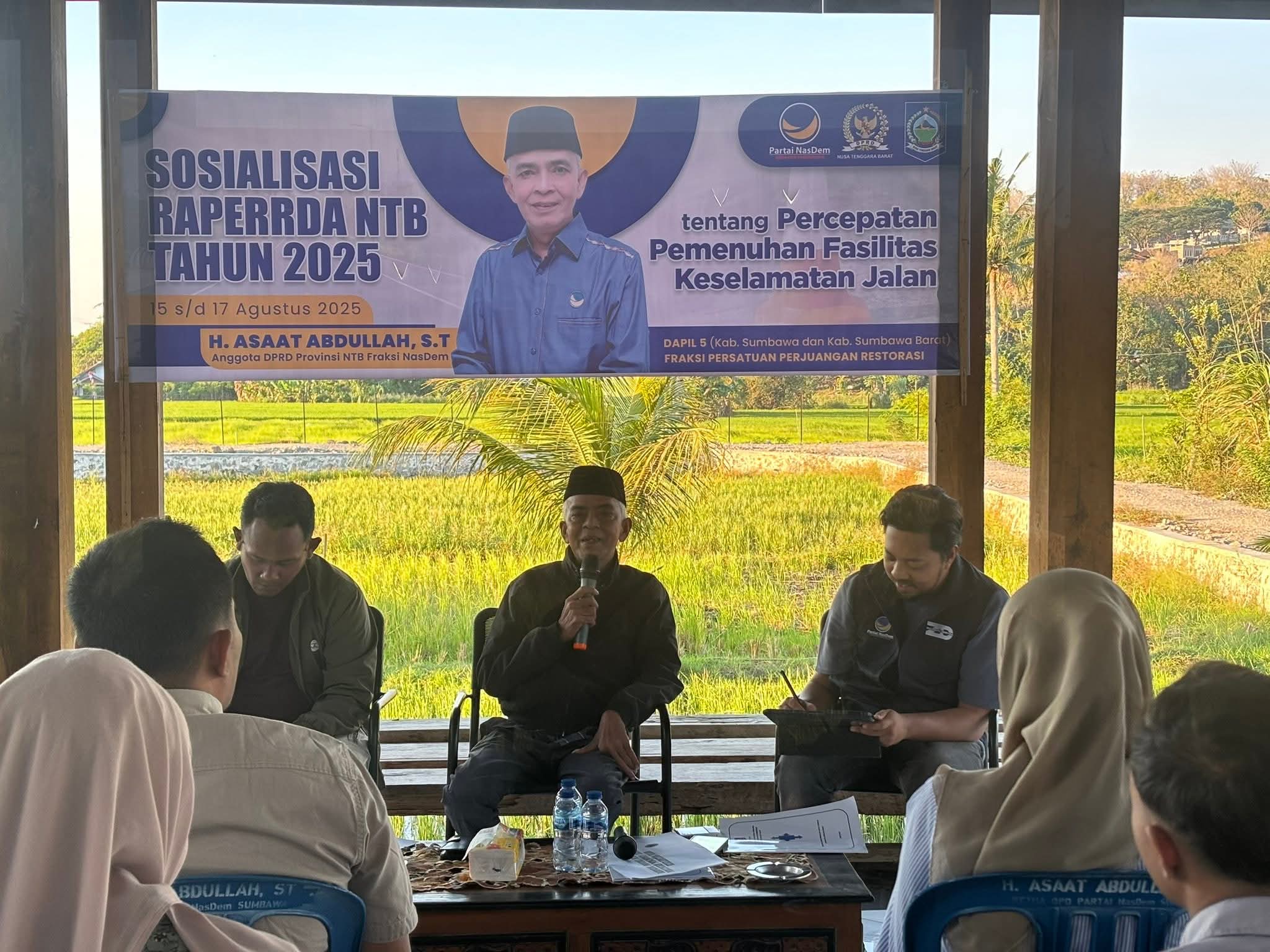 Sumbawa – Anggota DPRD Provinsi Nusa Tenggara Barat, H. Asaat Abdullah, ST, menggelar kegiatan sosialisasi Rancangan Peraturan Daerah (Raperda) tentang Percepatan Pemenuhan Fasilitas Keselamatan Jalan, Jumat (15/8). Kegiatan digelar di wilayah Perate, Kabupaten Sumbawa.