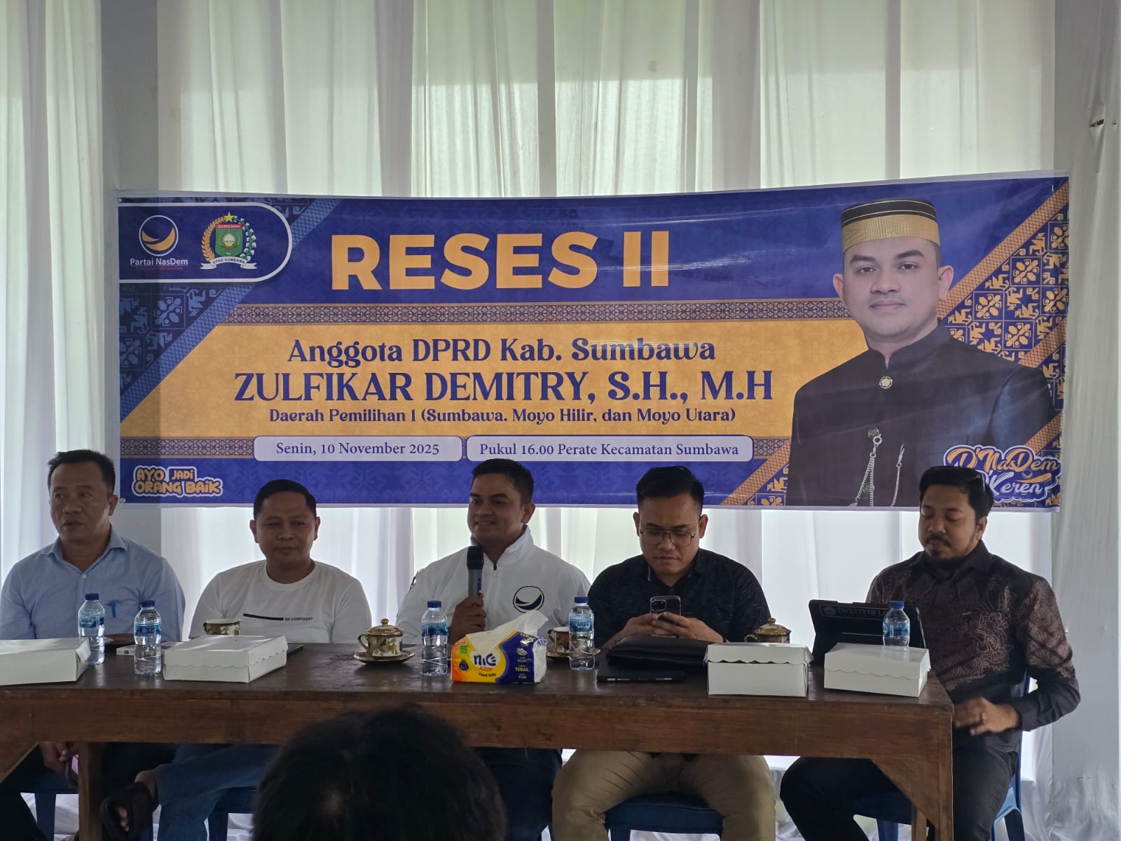 Sumbawa Besar – Wakil Ketua DPRD Kabupaten Sumbawa, Zulfikar Dimitry, SH, MH melaksanakan kegiatan Reses II Tahun 2025, Senin (10/11). Kegiatannya yang dipusatkan di Villa Biru, Desa Perate.